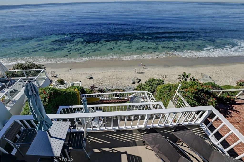 This stunning, fully furnished oceanfront/beachfront property boasts an unbeatable location with private steps leading directly to the sand. Enjoy breathtaking panoramic views of Catalina Island, Main Beach, and the North Coast lights from this two-bedroom, two-bathroom unit. The master bathroom and kitchen have been recently remodeled, and French doors lead to a private ocean view deck perfect for barbecues and watching the beautiful evening sunsets. Located within walking distance to many of Laguna Beach's world-famous restaurants, art galleries, and festivals, this exceptional property offers the ultimate coastal lifestyle. Don't miss this opportunity to make your dreams a reality and experience the best that Laguna Beach has to offer.