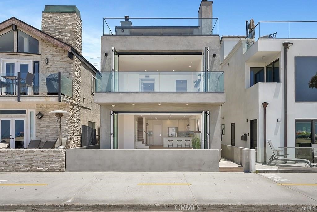 Available Now. Ocean front living at its finest. Completed in 2019 this contemporary custom-built home is located on the beach and has every amenity you could ask for. Expertly crafted, with impressive design and materials that are aesthetically pleasing to the eye. Walking through the front door you will notice high ceilings and an open concept. The custom kitchen is complete with high-end appliances, custom cabinets and countertops. Wall to wall custom folding doors on each level open to patios that lead you to the breathtaking views of golden sand, ocean waves, and Catalina Island. The sunsets are mesmerizing and tranquil, perfect way to wind down from your busy day. The second level offers 3 spacious bedrooms with attached bathrooms and a laundry room. The master bedroom features its own patio with panoramic ocean views, custom fireplace, automatic window treatments, beautiful en-suite bathroom with walk in closet and dual vanity. The third-floor bonus room has its own full bathroom and is connected to a covered outdoor patio, blending the indoor/outdoor living. The rooftop patio is complete with a built-in bar, fireplace, overhead heaters and surround sound. In addition, this home comes pre-wired for smart home sound and security. Two AC units, automatic window shades and two car epoxy garage flooring, and one additional oversized parking space behind garage (perfect for large vehicles). Ideally looking for a year-round tenant but would consider a shorter-term lease at a seasonal rate. Don't miss this opportunity to live on the beach.
