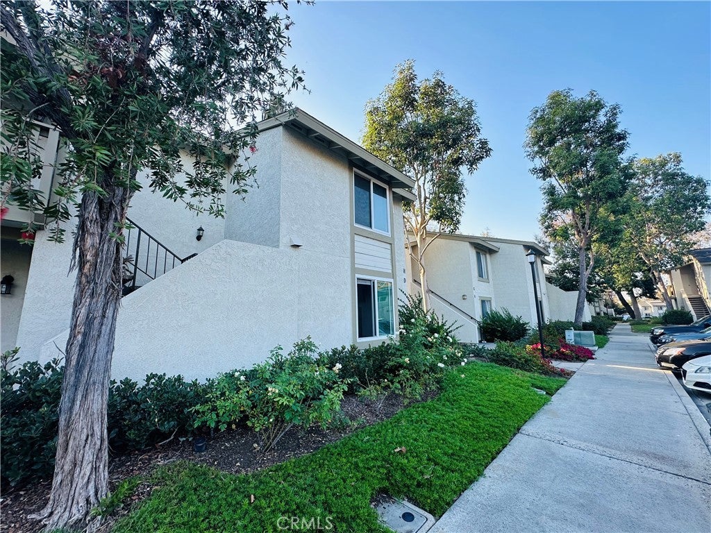 Beautiful Valencia Community condo for sale. Good size one bedroom one bathroom condominium. Ground floor, end unit with a spacious private patio area. No condominium behind the back patio, perfect for reunions with family and friends. Washer and dryer room is in the back patio. Open floor plan that makes the space look bright and cozy with the large sliding door that allows the light flow in nicely from the large patio. Carpet on Living room, ceiling fan. kitchen is open to then living room area, stainless steal appliances, quartz countertops, tile floor and recesses lights. Comfortable roomy bedroom with delightful barn door and ceiling fan. Large walk-in closet. The bathroom is beautiful with upgraded tub slider doors and vinyl floor. The vanity is framed with quartz backsplash and recessed lights. Double pane vinyl windows and sliding door. Location defines Valencia Condominiums. Close to 5 fwy, shopping centers, schools, and entertainment. William S Craycraft Park is walking distance from the condominium. Membership to The Mission Viejo Lake. Enjoy the lake, fishing, small boat/paddle boards rentals, sport courts and picnic areas.
