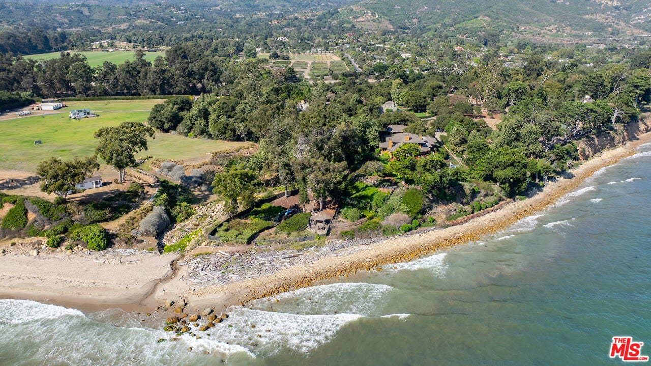 Incredible new price for a legacy property with a private beach! The final remaining true, large beach estate on the Southern California coast awaits, a rarity found directly on famous surf break Loon Point, promising an extraordinary life in harmony with sand, ocean, and sun. Positioned in a celebrity-studded enclave, Rancho Carinoso is a world-class legacy property offering an astounding 4.2 acres of oceanfront allure. A long driveway leads to a motor court surrounded by mature trees, new landscaping and lush greenery. Inside, the three-bedroom, four-bathroom home spans a single, thoughtfully designed level. A 1000-square-foot detached garage adds ease. This exquisite property is zoned for up to nine horses to be stabled on its grounds. A private trail leads directly to the horse-friendly beach. Enjoy the rare opportunity as the homeowner to ride your horse on the beach down to Santa Claus Lane at any hour of the day, a coveted privilege and treasure as all other riders on the beach must use the public trail under strict time constraints. Dock your yacht conveniently in front of the homesite and tender to shore to the private beach/backyard area. Residents have the ability to keep a hangar of water toys, such as small boats and kayaks on the beach portion of the property; launch a jet ski from your backyard. Ride small ATVs on the property and trails all the way to the private beach cabana an opportunity that no other home on Padaro Lane or in the area is privy to. Experience world-class lobster diving in the backyard, barbecue on the beach and enjoy views of the Santa Barbara harbor fireworks from the cabana. Explore a private hiking trail on-site, enjoy the fruits of avocado and citrus trees and luxuriate in the spa with direct views of the Channel Islands in the distance. The property provides a drip irrigation system for turnkey landscaping. With multiple building sites on the property, the possibilities for streamlined building are endless. Two structures have already been built, and residents will have the creative opportunity to expand on the two existing structures or build anew. A flat area below the main house is an ideal location for a state-of-the-art pool and pool house. The ideal location lends proximity to the Rosewood Miramar, the Santa Barbara Polo & Racquet Club and a private airport. Rancho Carinoso is nothing short of a wonderland, and all who step foot within its gates are sure to be enchanted and inspired by its magical splendor.