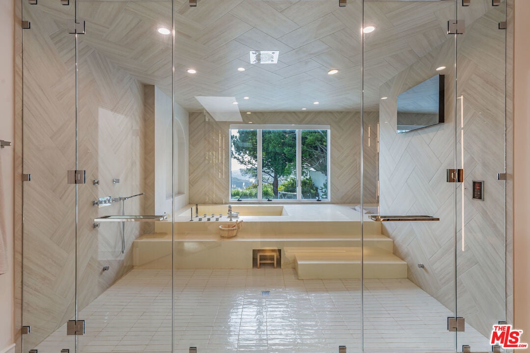Located within an exclusive gated community, this extensively remodeled home seamlessly combines luxury, comfort, and sophistication. Spanning an expansive layout, the property boasts 6 beautifully appointed bedrooms and 5.5 spa-inspired bathrooms, each designed with custom fixtures and high-end finishes. As you step through the grand foyer, you're immediately welcomed by an awe-inspiring chandelier and expansive skylights that bathe the space in natural light. The open-concept living area exudes elegance and warmth, featuring a cozy fireplace and an integrated wet bar ideal for both intimate gatherings and larger entertainment. The chef's kitchen is a true culinary dream, outfitted with top-of-the-line Sub-Zero and Wolf appliances, marble countertops, and a spacious center island. It's designed for both style and functionality, with ample room for meal prep and casual dining. A newly added walk-in pantry provides additional storage for added convenience.The master suite offers a private sanctuary, complete with its own fireplace, a newly remodeled modern walk-in closet with custom cabinetry, and generous storage space. The master bathroom is nothing short of extraordinary, featuring a stunning walk-in bath/shower with a steam room and cold plunge, bringing a spa-like experience to your daily routine. French doors lead out to a private balcony, offering sweeping views of the manicured gardens, sparkling pool, and scenic surroundings. For those who love to entertain, a newly designed bar area features a built-in 280-bottle wine cellar, while the fully renovated media room, with its sunken RH Cloud sofa, offers the perfect space for movie nights. Step outside to your own personal oasis, an entertainer's paradise. The resort-style backyard includes a rejuvenated heated swimming pool with an in-ground Jacuzzi, water features, and a large, flat astroturf lawn. The newly built outdoor kitchen, complete with a BBQ grill and wood-fired pizza oven, is perfect for gatherings under the stars. A landscaped fish pond with water features and a new herb garden add to the serene beauty of this extraordinary space. Additional highlights include smart home technology, fully integrated with Lutron, Google Home, Nest Thermostat, and a surround-sound Sonos system throughout the home, back patio, and backyard. For added security, the property features ADT and Ring security systems. Perfectly blending modern luxury with timeless elegance, 12000 Crest Court is truly a masterpiece of design and function.