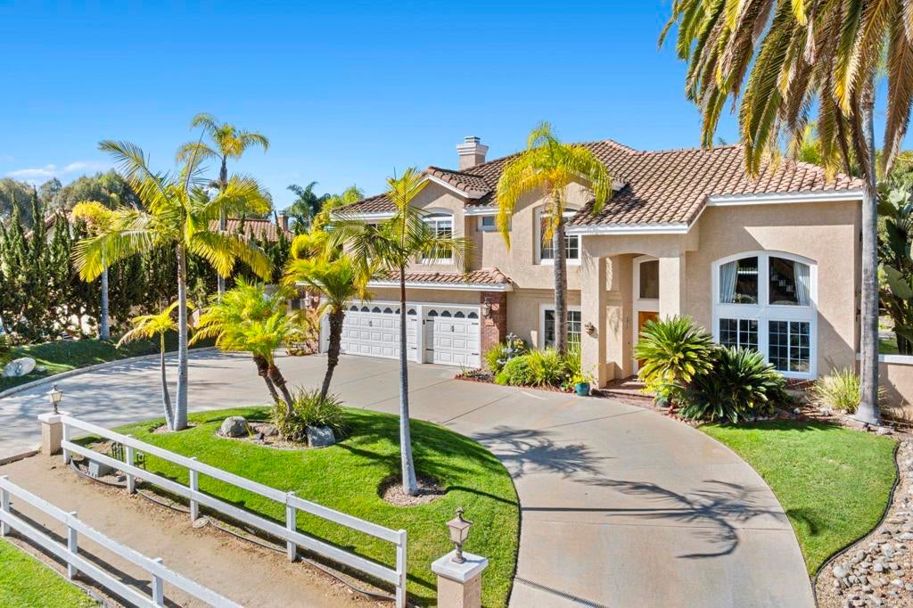 This stunning two-story home sits on an expansive 0.35-acre lot, offering the perfect blend of luxury, privacy, and resort-style living. Designed for both relaxation and entertaining, this home boasts high vaulted ceilings, spacious living areas, and abundant natural light. The primary suite is a true retreat, featuring custom-built closets, a spa-like en-suite bathroom with a jetted soaking tub, heated flooring, and dual vanities. A downstairs bedroom with a full bath makes for an ideal guest suite or multi-generational living space. The tropical backyard paradise is an entertainer’s dream, complete with a sparkling pool and spa, lush landscaping, and an outdoor kitchen featuring a built-in BBQ, an 8-foot bar, and plenty of seating for gatherings. A built-in fire pit with wraparound seating creates the perfect spot to relax under the stars. The property also includes large, fenced-in RV parking behind an oversized gate for privacy, as well as a circular driveway that enhances curb appeal and provides parking for up to six cars. Additional features include a central vacuum system for effortless cleaning and an equestrian-style walkway lined with classic white wooden fences, creating a picture-perfect entrance. With ample space for a potential ADU, this home offers endless possibilities. With no HOA or Mello-Roos, you have the freedom to enjoy your home without extra fees or restrictions. Don’t miss this rare opportunity to own a versatile, high-end property in a prime location.