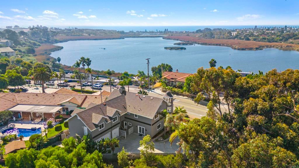 Ocean and lagoon views. ALL Utilities Included! West of I-5. Open floor plan. Available immediately for rent. One year lease with optional month-to month extension. Bring your pets! Located just a few blocks from Carlsbad Village, this unfurnished 4 bedroom, 4 bath two story home, west of the 5, with gorgeous views across the Buena Vista Lagoon and the ocean beyond, is a perfect home for a large family or group of friends looking for the perfect coastal retreat. A modern, upgraded kitchen located upstairs provides sweeping blue views. The second floor also boasts one of two primary suites, a secondary bedroom, bathroom and laundry room. The downstairs living area feels like its own house, with a separate living/great room, the second primary suite with ocean views, large bathroom with dual sinks, walk-in closet and a huge soaking tub and a smaller secondary bedroom and bathroom. With over 3,000 feet of living space on a 0.25 acre lot, there’s plenty of space to spread out and entertain. Rental price includes all utilities (water, trash, sewer, Internet, SDGE) and landscaping maintenance. Central AC. Two car garage and plenty of driveway and off street parking available. Please note that a separate tenant will be occupying the apartment located above the garage. This ADU is completely separate from the main house and has its own gated entrance and yard.