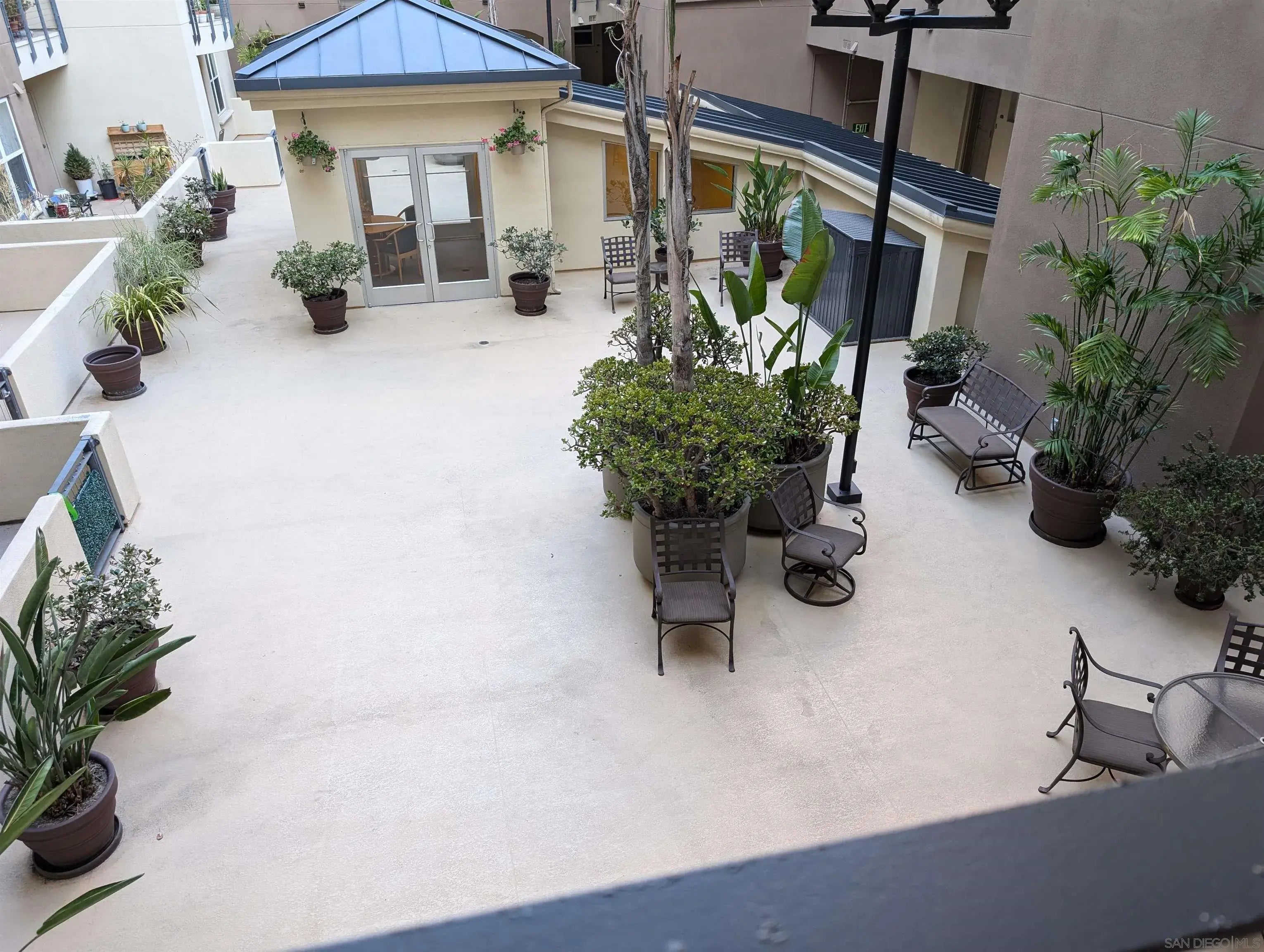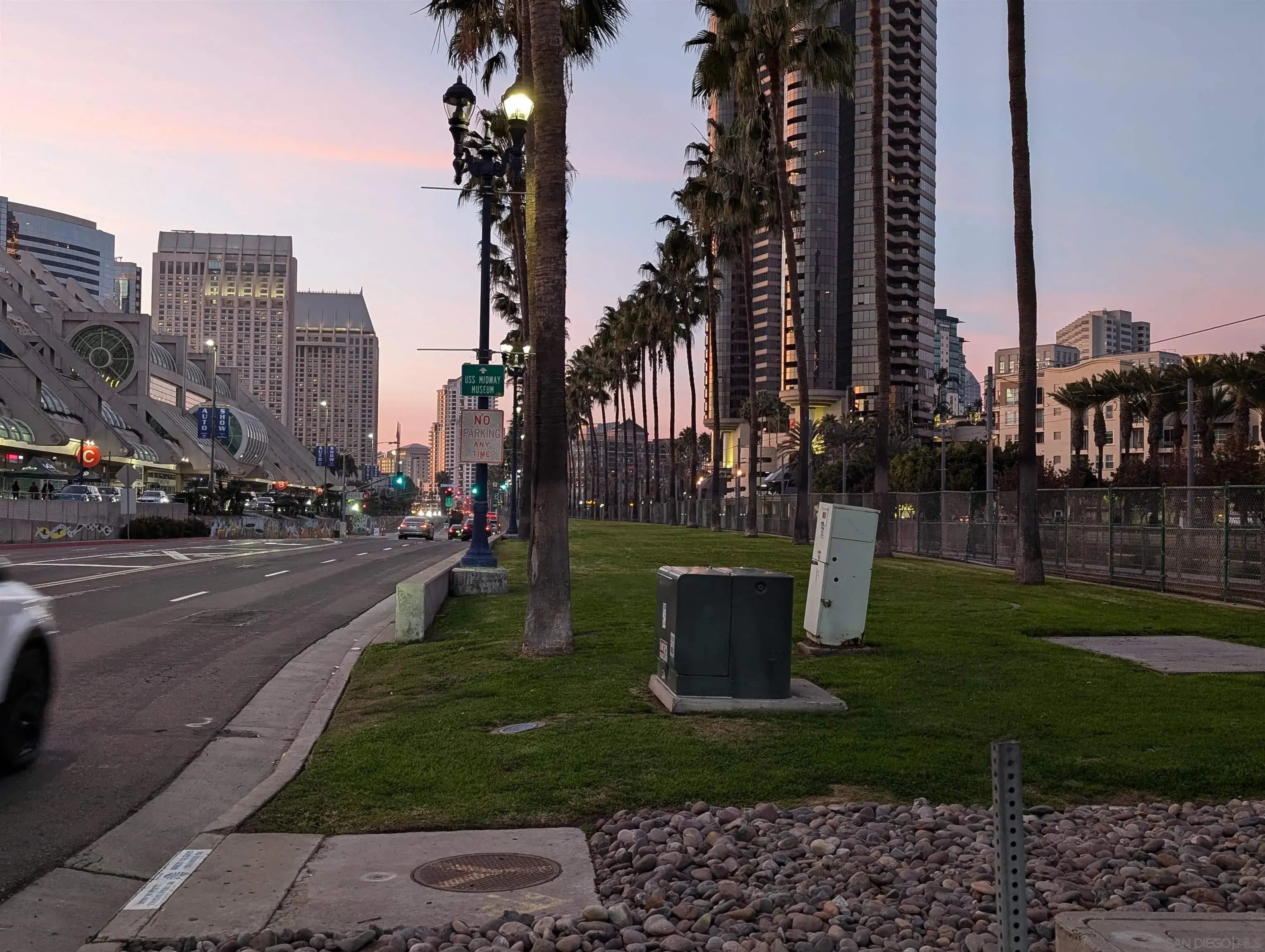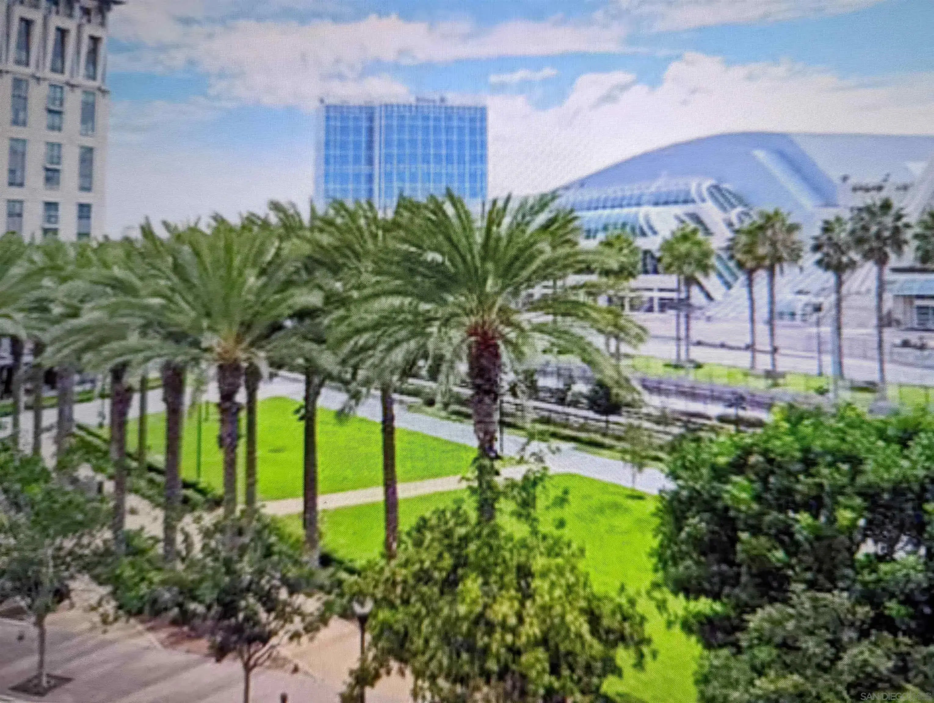 Location, Location, Location! Experience this gorgeous, bright, and remarkably quiet 2-bedroom, 2-bathroom condominium, turn-key ready! Perfectly located in the prestigious Marina District—the most premier and vibrant neighborhood in Downtown San Diego, just across from the Convention Center. This unit features an open, spacious floor plan with views of a lovely courtyard and includes two exclusive gated parking spaces on the first floor. The building is electronically secured, and it has 2 elevators and stairs. The condo boasts central air conditioning/heating (AC), ceiling fans, a private balcony with a storage closet, a walk-in closet in the master bedroom, kitchen with lots of cabinets and pantries, stainless steel appliances, and an in-unit washer/dryer. For added ease, a trash chute is conveniently located near to the entrance. The building offers desirable amenities such as a gym, a game/community room, a rooftop lounge for sunbathing & relaxation, and a BBQ area. Enjoy this unbeatable location within steps of the Gaslamp Quarter, San Diego Bay, Seaport Village, the Trolley Station, Petco Park, The Rady Shell at Jacobs Park, The Public Law Library, countless restaurants, entertainment venues, parks, and grocery stores. World-famous attractions like Balboa Park, the World-Famous San Diego Zoo, beautiful beaches, and major medical facilities are just minutes away by car, bike, or public transit. The low HOA dues deliver high value by covering essentials like high-speed Google Fiber internet, water, sewage, trash, all common area maintenance, and structural insurance.