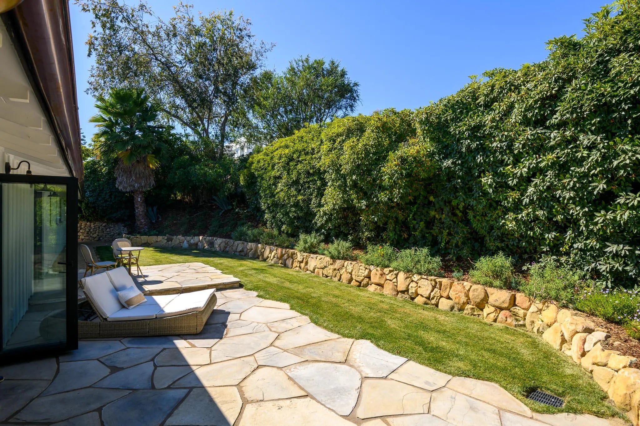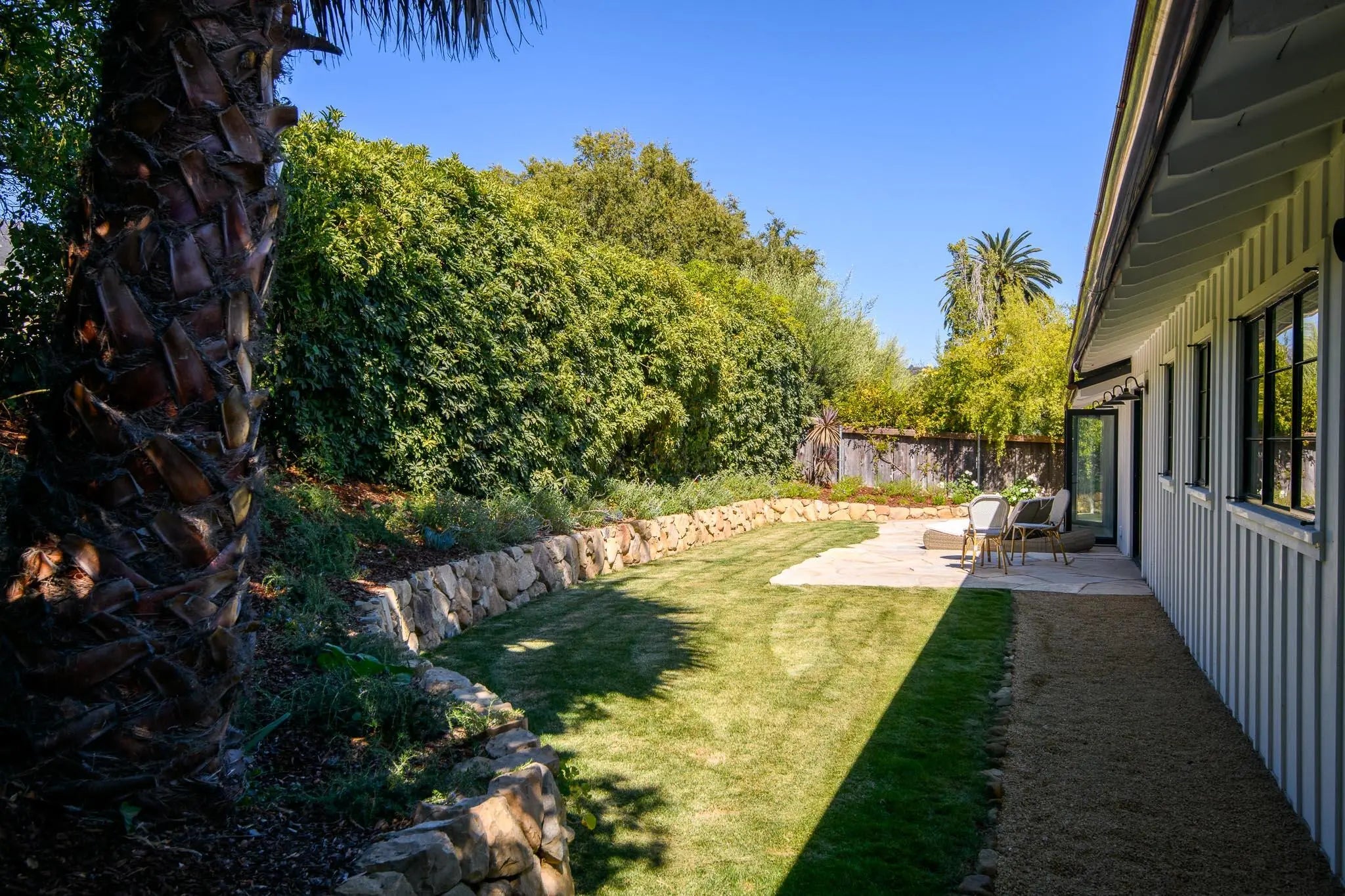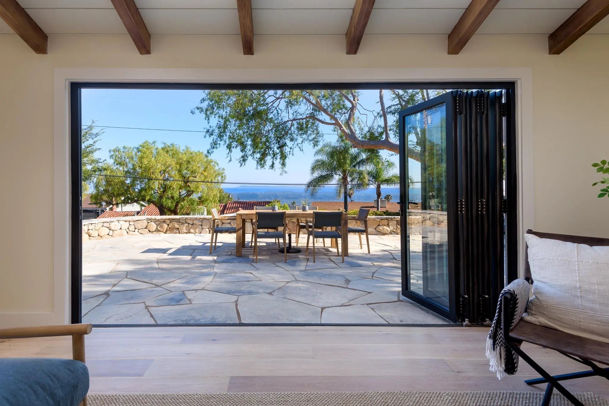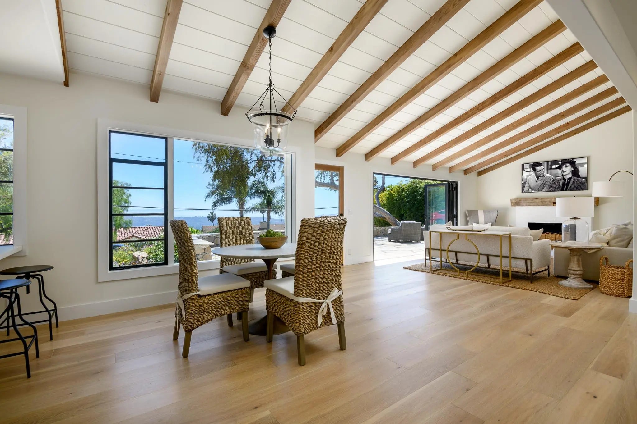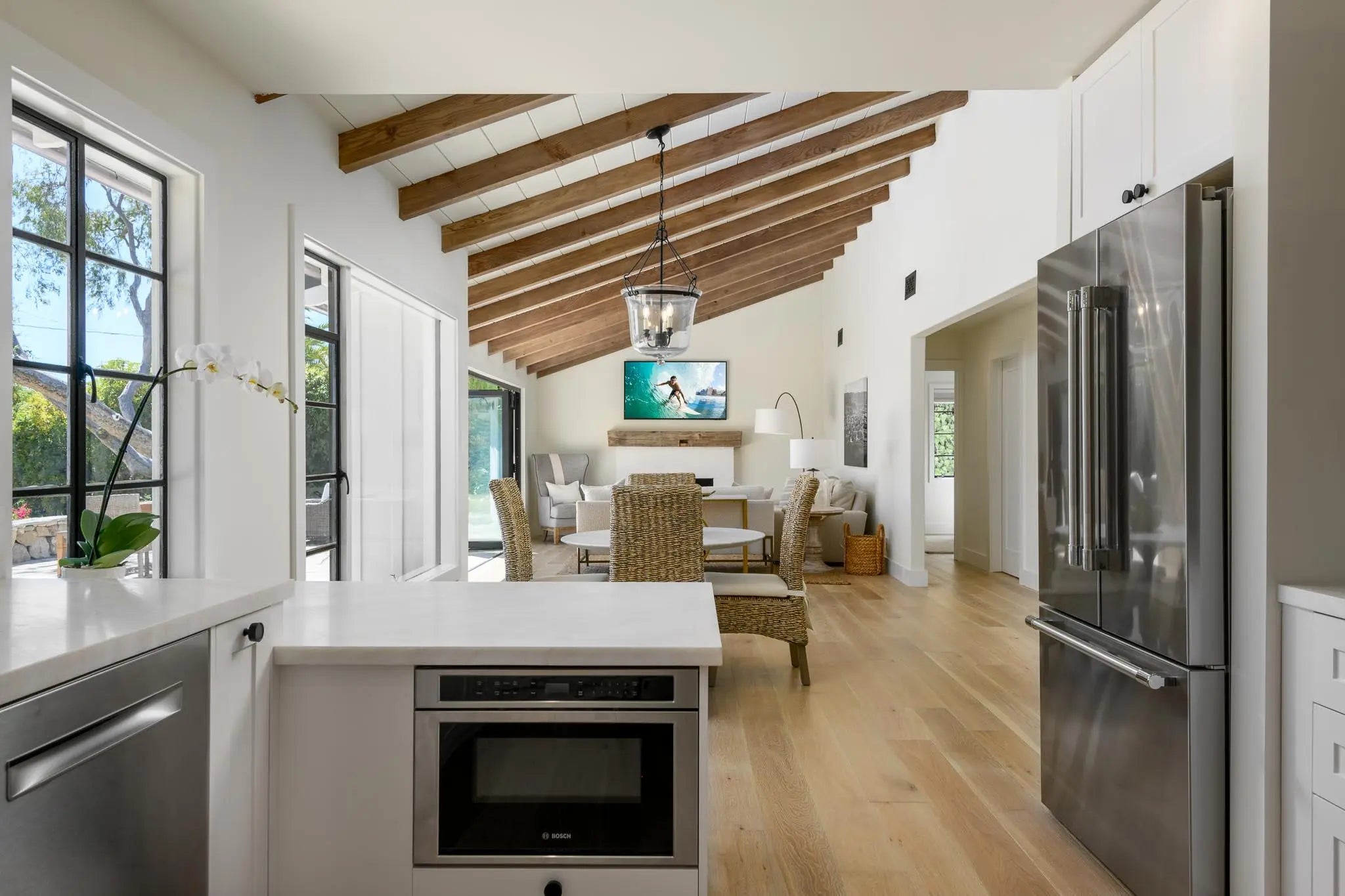 Experience sophistication and immaculate attention to detail in this extraordinarily remodeled 4 bedroom, 3 bathroom, Mission Canyon property. The open floor plan brings attention to the custom-built kitchen, complete with luxury Bosch appliances, white-marble countertops, custom stunning cabinets, and bar-style seating. Beyond the kitchen sits the dining and then living room-all which feature an ocean view and exemplifies indoor-outdoor living via a large accordion door that opens up to the expansive limestone patio. The primary suite also boasts ocean views as well as vaulted ceilings with exposed timber beams, designer plumbing fixtures, two closets, high-end tiles, and accordion doors opening to the lush backyard. In addition to new mechanical, electrical, and plumbing systems, the remodel brought custom French Oak floors, restored timber details, a new tankless water system, recessed LED lighting, energy-efficient insulation, a new heating & cooling duct system, a new roof with asphalt shingles, and new copper gutters connecting to French drains.