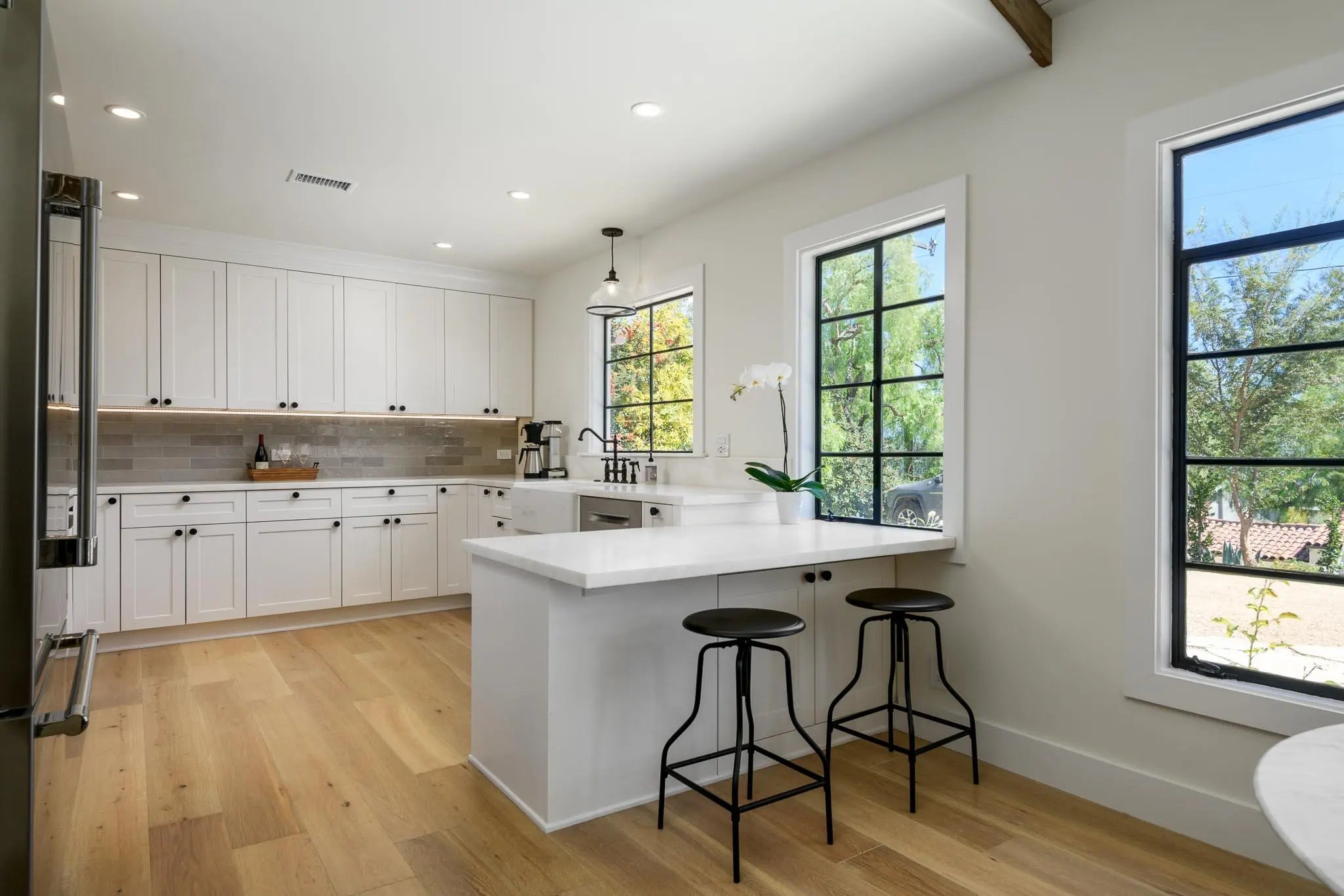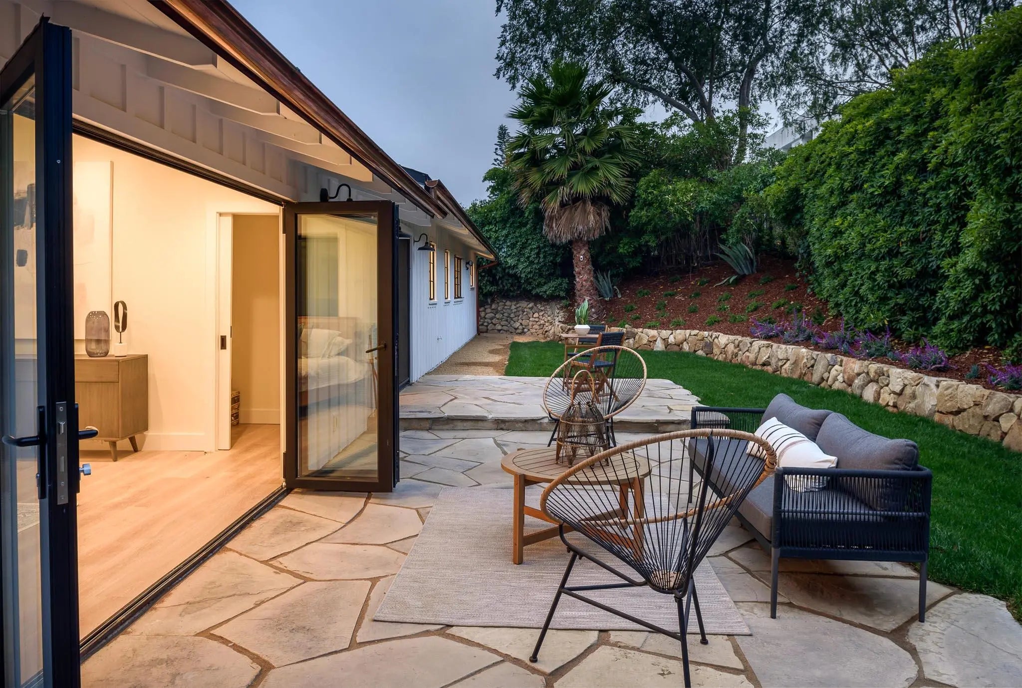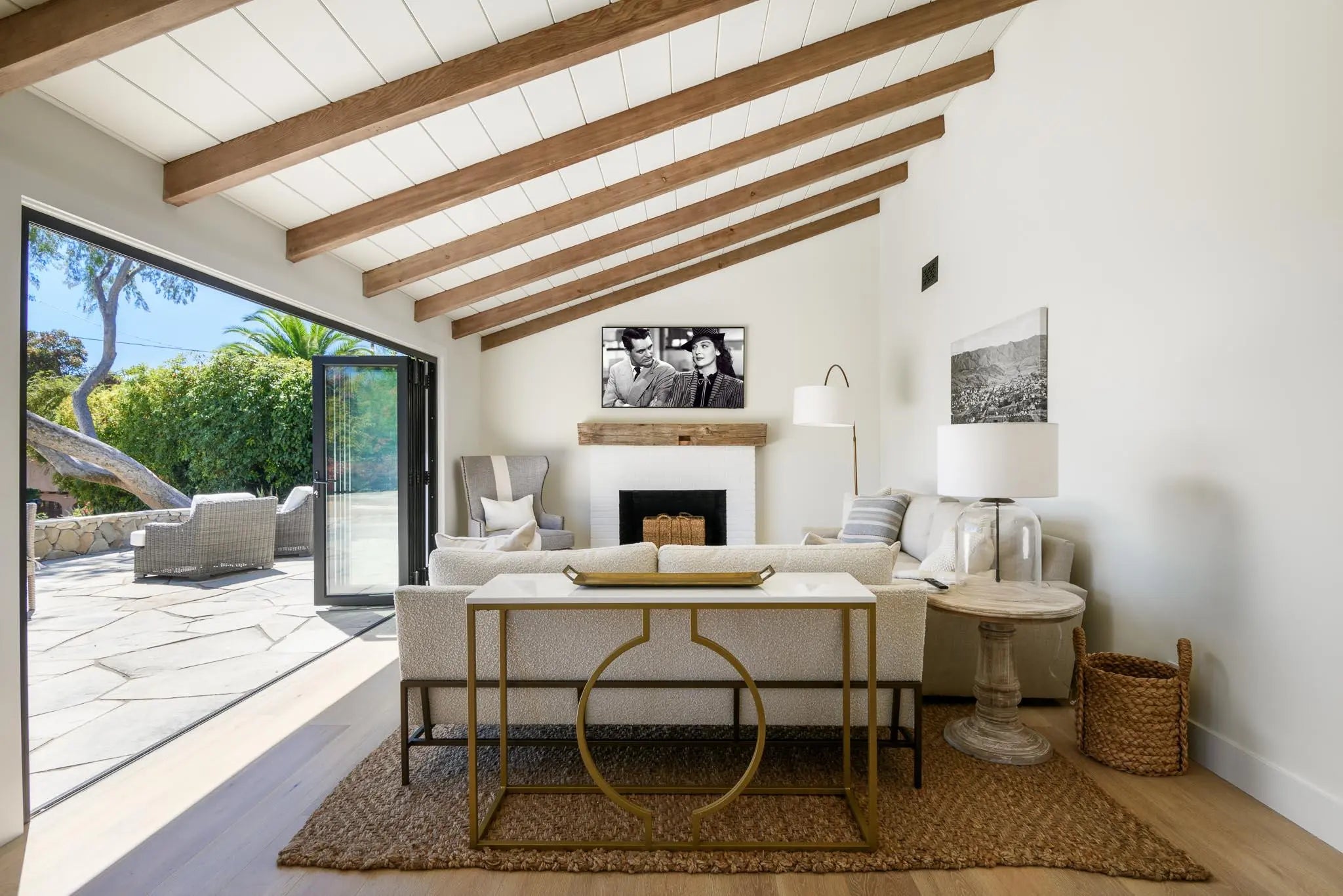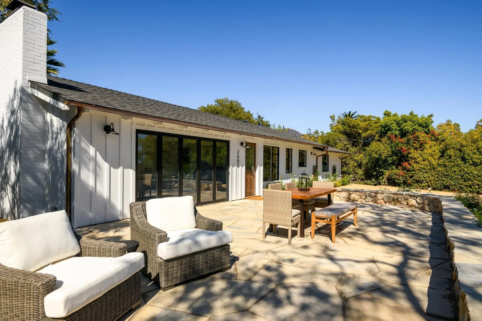 Experience sophistication and immaculate attention to detail in this extraordinarily remodeled 4 bedroom, 3 bathroom, Mission Canyon property. The open floor plan brings attention to the custom-built kitchen, complete with luxury Bosch appliances, white-marble countertops, custom stunning cabinets, and bar-style seating. Beyond the kitchen sits the dining and then living room-all which feature an ocean view and exemplifies indoor-outdoor living via a large accordion door that opens up to the expansive limestone patio. The primary suite also boasts ocean views as well as vaulted ceilings with exposed timber beams, designer plumbing fixtures, two closets, high-end tiles, and accordion doors opening to the lush backyard. In addition to new mechanical, electrical, and plumbing systems, the remodel brought custom French Oak floors, restored timber details, a new tankless water system, recessed LED lighting, energy-efficient insulation, a new heating & cooling duct system, a new roof with asphalt shingles, and new copper gutters connecting to French drains.