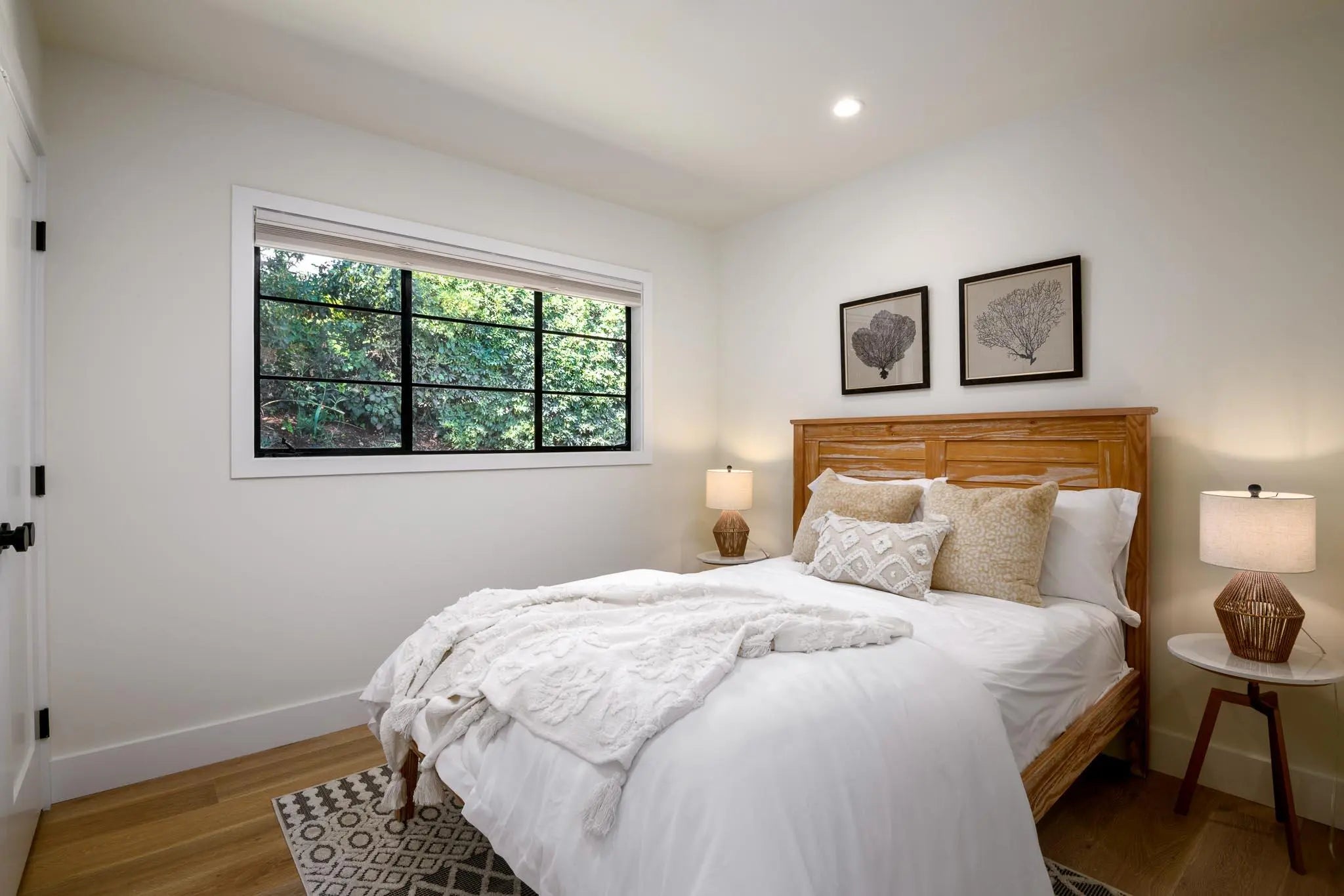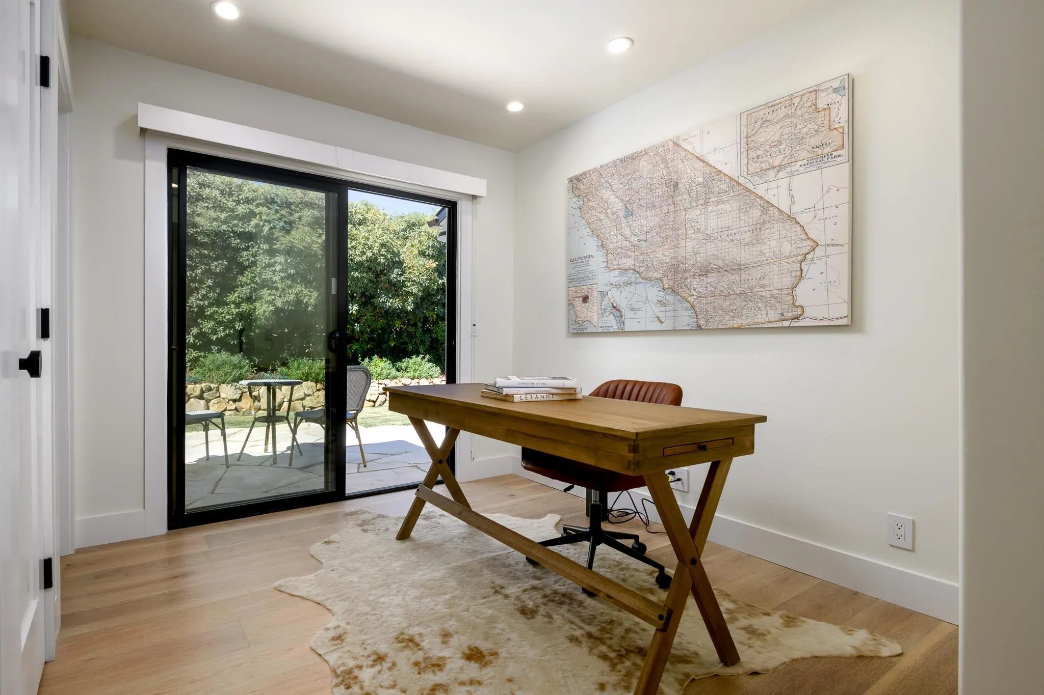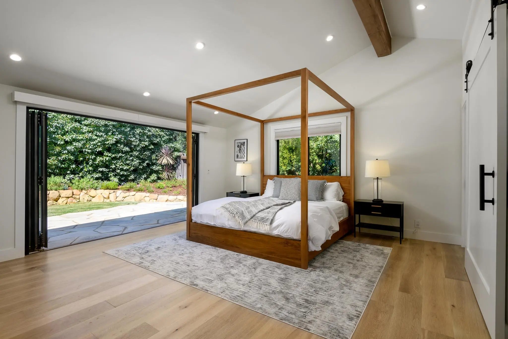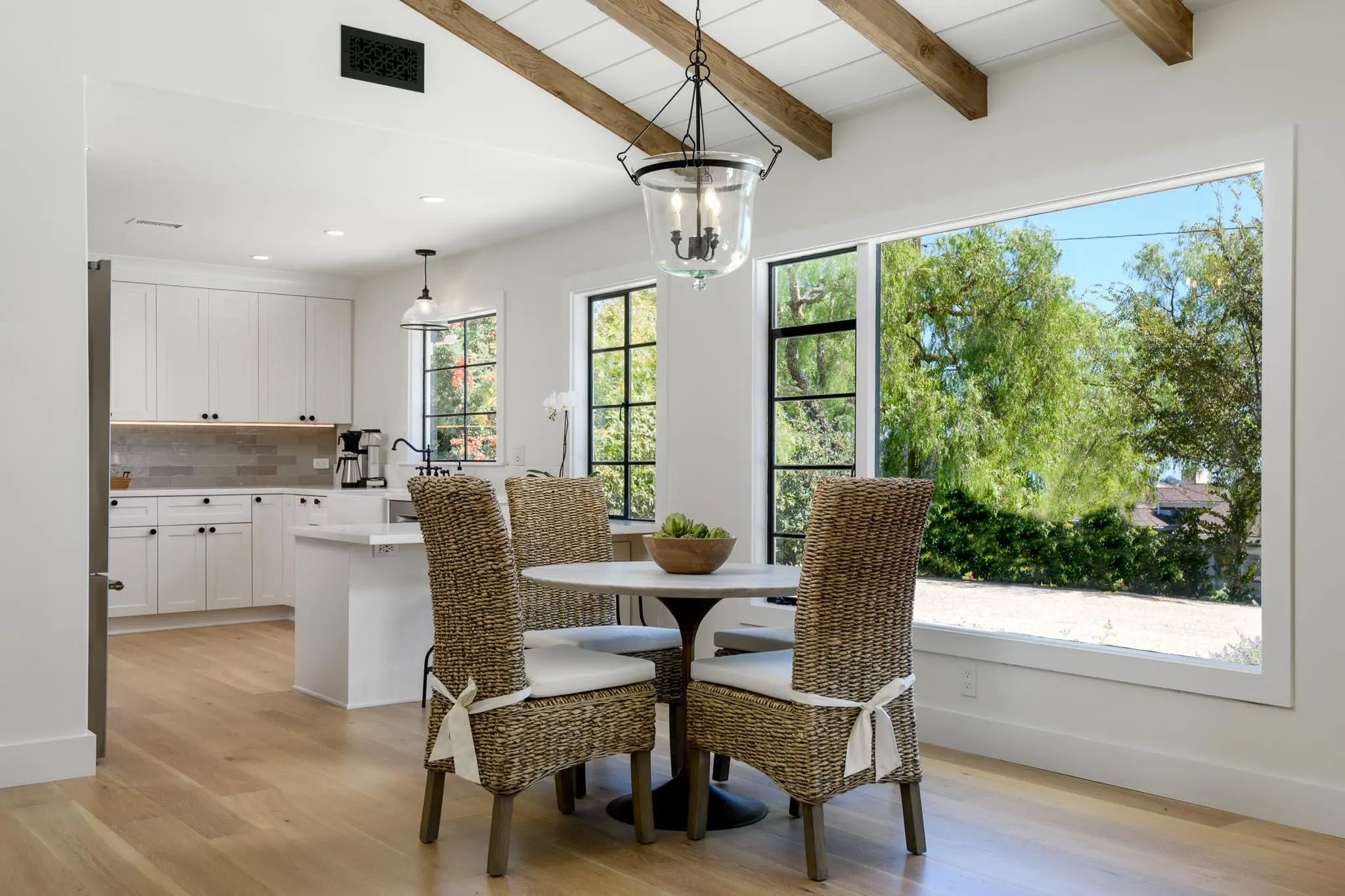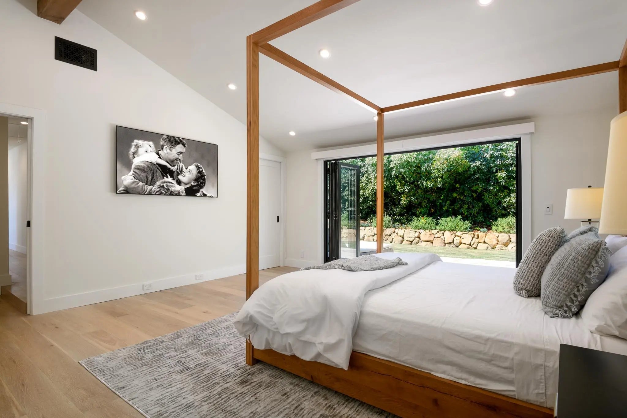 Experience sophistication and immaculate attention to detail in this extraordinarily remodeled 4 bedroom, 3 bathroom, Mission Canyon property. The open floor plan brings attention to the custom-built kitchen, complete with luxury Bosch appliances, white-marble countertops, custom stunning cabinets, and bar-style seating. Beyond the kitchen sits the dining and then living room-all which feature an ocean view and exemplifies indoor-outdoor living via a large accordion door that opens up to the expansive limestone patio. The primary suite also boasts ocean views as well as vaulted ceilings with exposed timber beams, designer plumbing fixtures, two closets, high-end tiles, and accordion doors opening to the lush backyard. In addition to new mechanical, electrical, and plumbing systems, the remodel brought custom French Oak floors, restored timber details, a new tankless water system, recessed LED lighting, energy-efficient insulation, a new heating & cooling duct system, a new roof with asphalt shingles, and new copper gutters connecting to French drains.