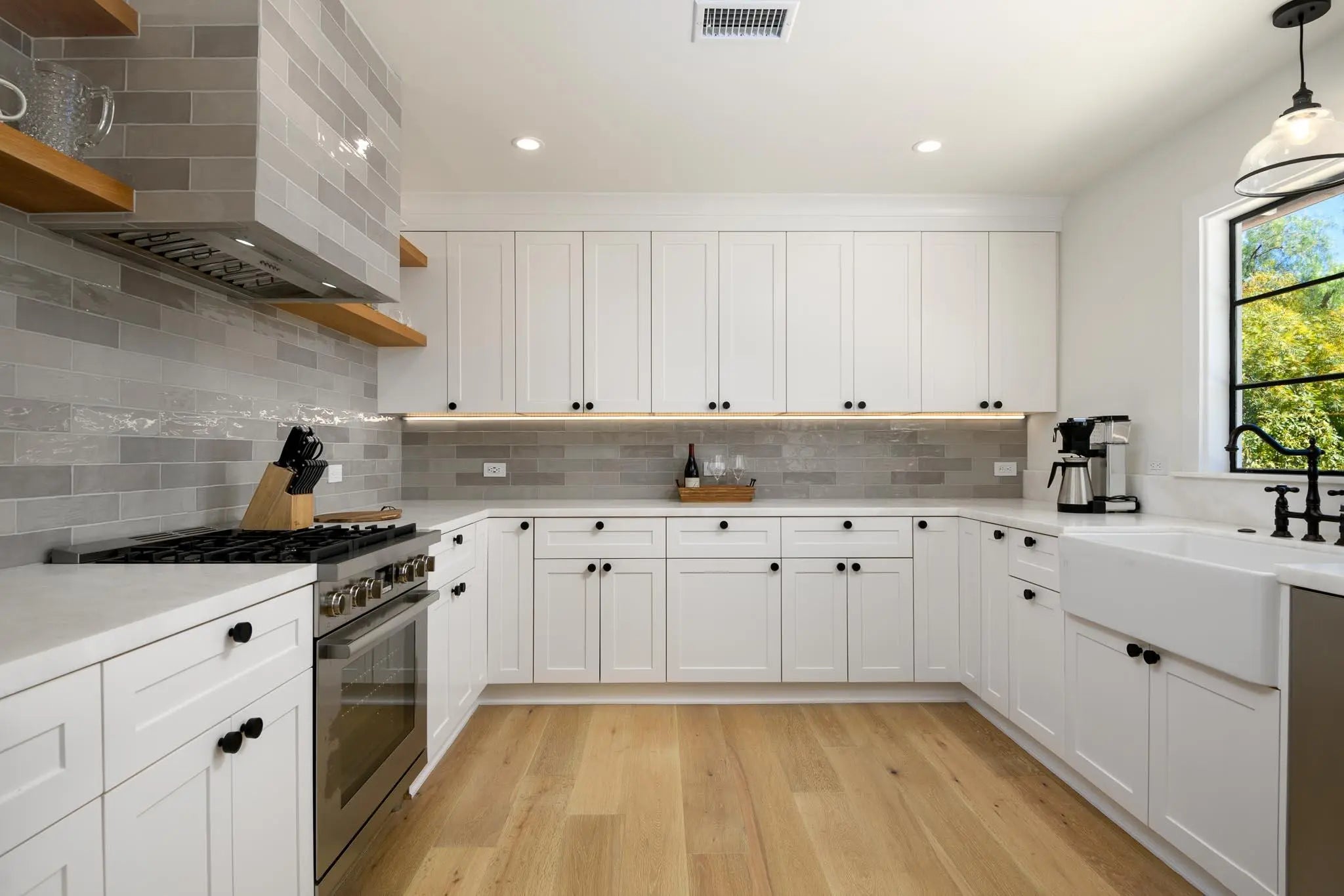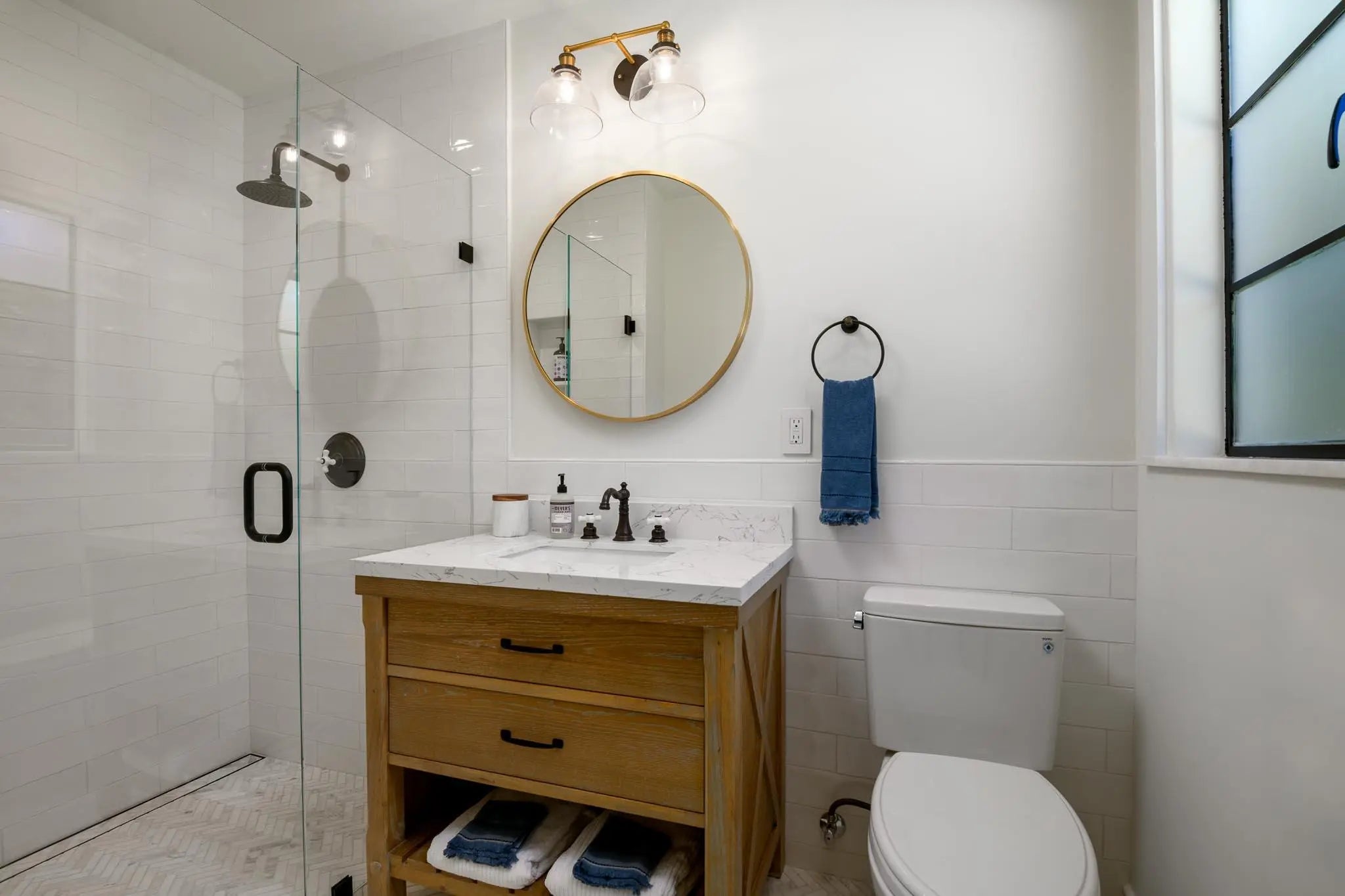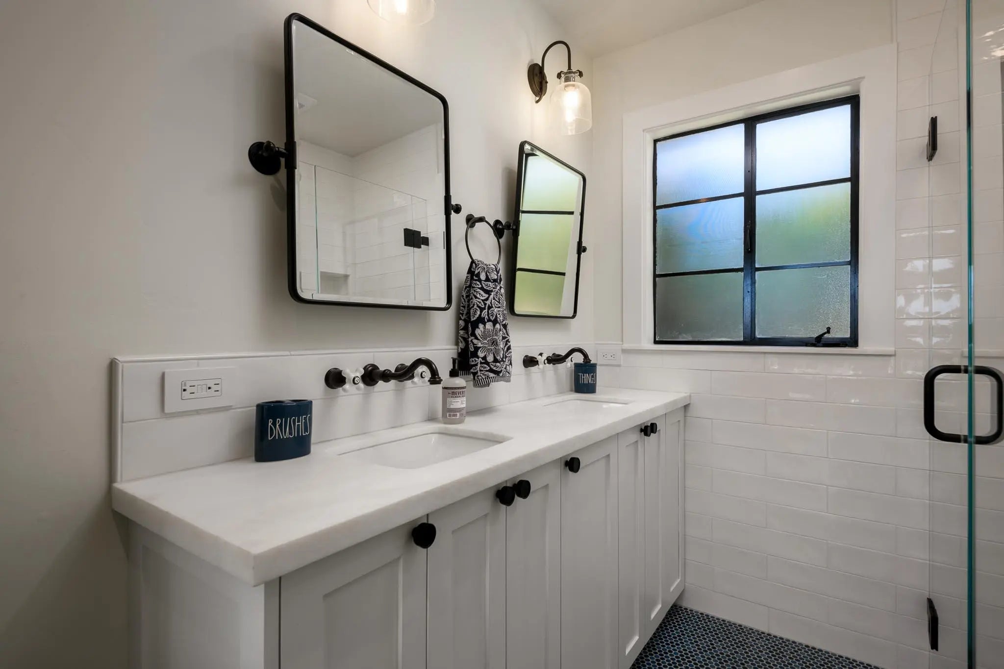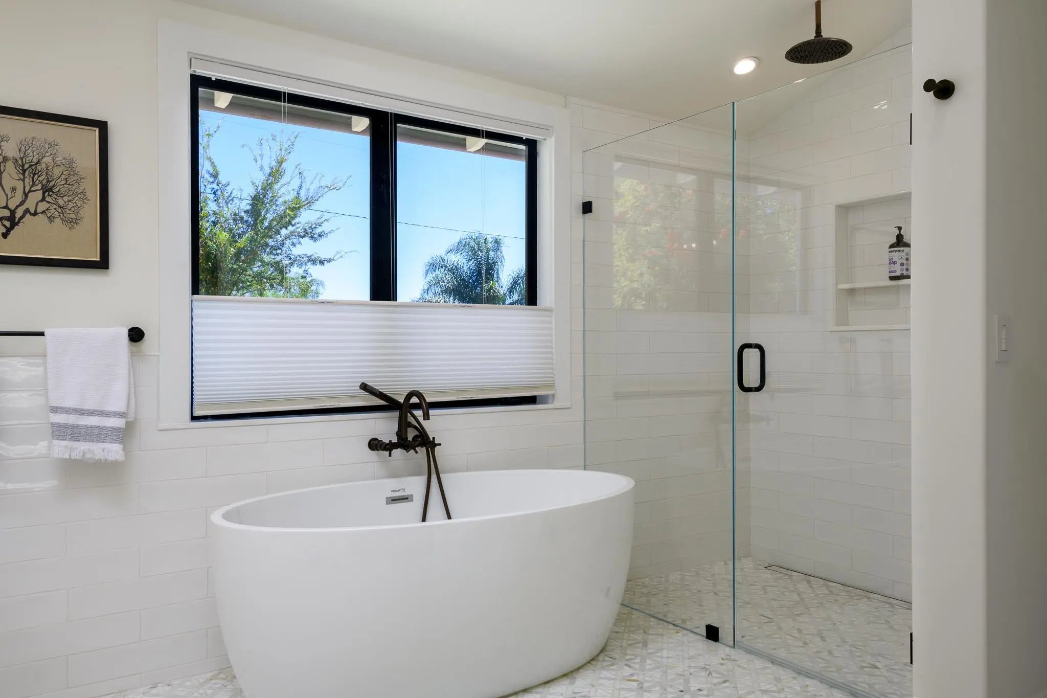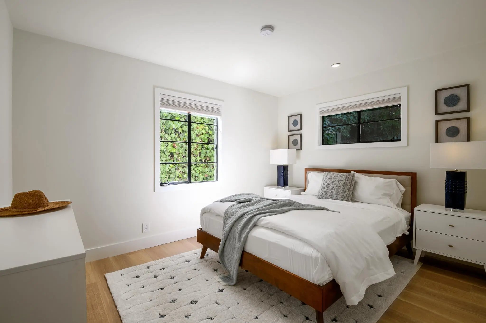 Experience sophistication and immaculate attention to detail in this extraordinarily remodeled 4 bedroom, 3 bathroom, Mission Canyon property. The open floor plan brings attention to the custom-built kitchen, complete with luxury Bosch appliances, white-marble countertops, custom stunning cabinets, and bar-style seating. Beyond the kitchen sits the dining and then living room-all which feature an ocean view and exemplifies indoor-outdoor living via a large accordion door that opens up to the expansive limestone patio. The primary suite also boasts ocean views as well as vaulted ceilings with exposed timber beams, designer plumbing fixtures, two closets, high-end tiles, and accordion doors opening to the lush backyard. In addition to new mechanical, electrical, and plumbing systems, the remodel brought custom French Oak floors, restored timber details, a new tankless water system, recessed LED lighting, energy-efficient insulation, a new heating & cooling duct system, a new roof with asphalt shingles, and new copper gutters connecting to French drains.