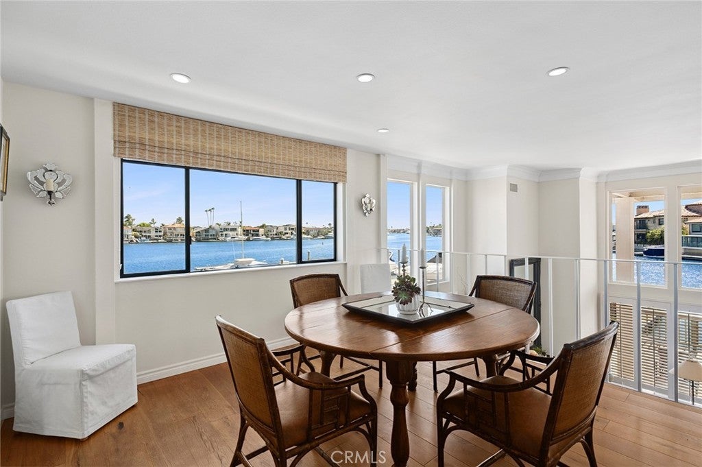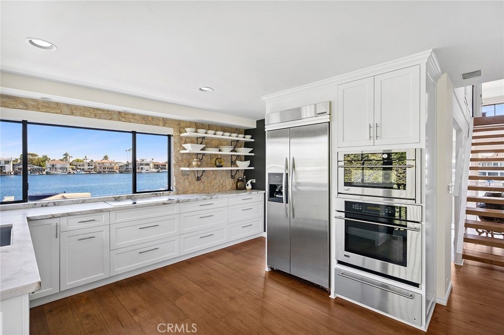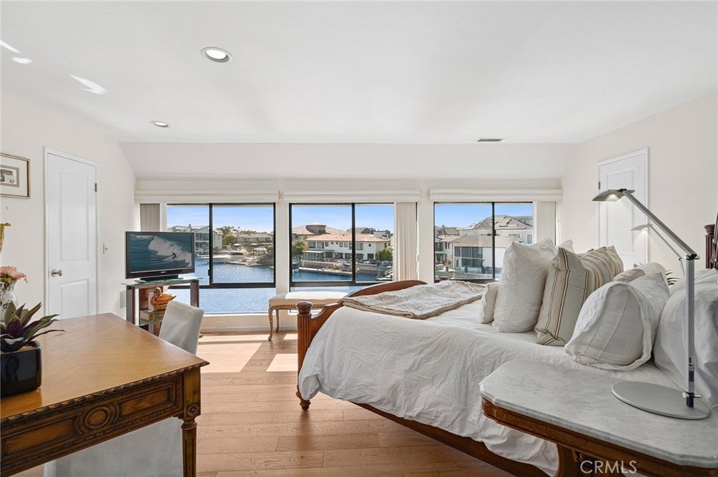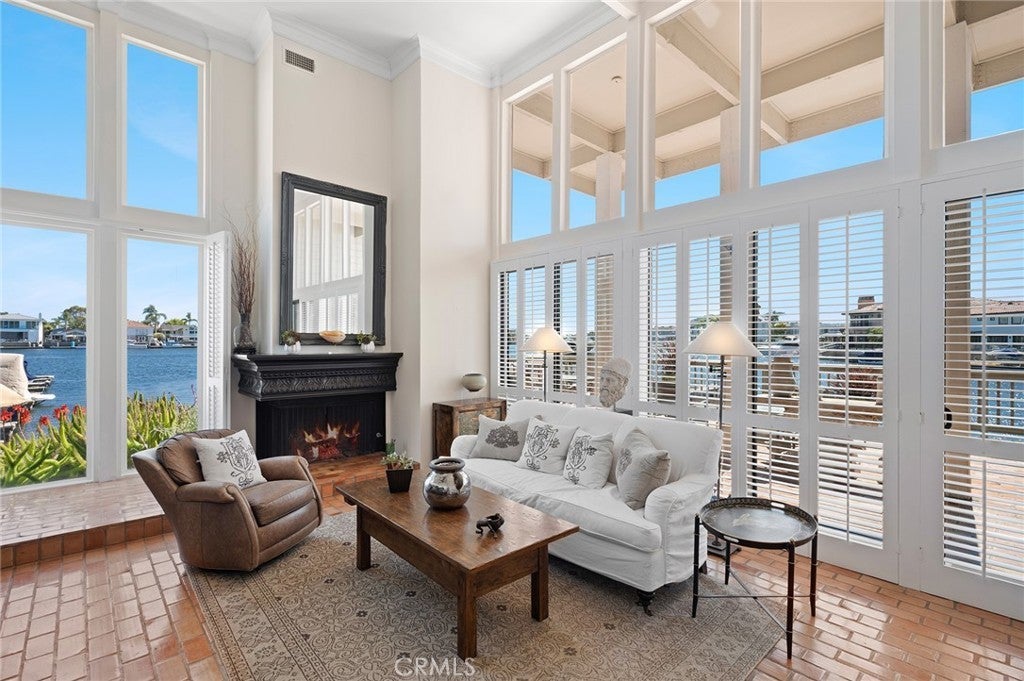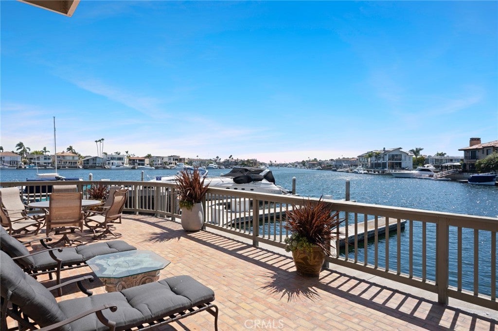 Outstanding Coastal Retreat with dock for a 48-foot boat in gated Tennis Estates in Huntington Harbor. This one-of-a-kind, totally renovated home sits directly on the water on a stunning corner promontory with Bay views from every room. The bright and airy entry-level features a living room with a fireplace, ultra-high ceilings, and floor-to-ceiling windows, plus a cozy den with bar seating. Outside, the cantilevered patio is super-sized with panoramic views of Christiana Bay, the largest bay in the Harbor. The 2nd level showcases a chef’s gourmet kitchen with marble counters and top-of-the-line appliances, and an adjacent formal dining room. The 3rd level provides two ensuite bedrooms and a sitting room with gorgeous views that could be enclosed as a third bedroom. The primary bedroom features two walk-in closets and an ultra-luxurious spa-quality bath. The Tennis Estates community offers shaded walking paths, multiple tennis/pickleball courts, and a beautiful pool. Don’t miss this amazing home and community!