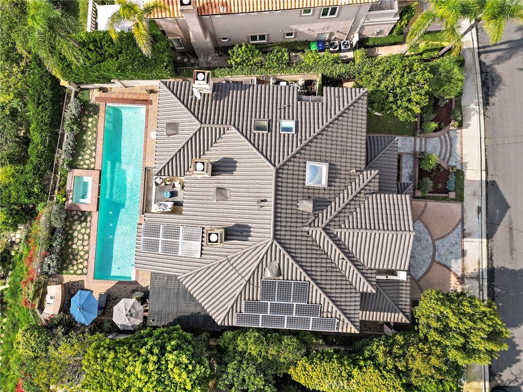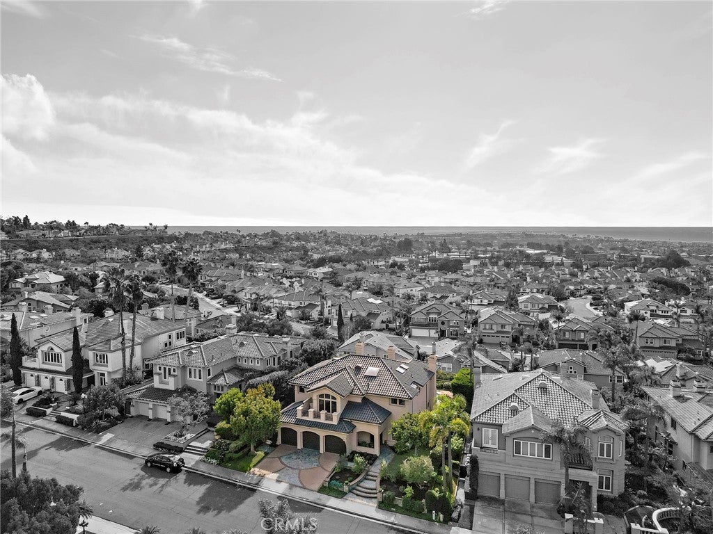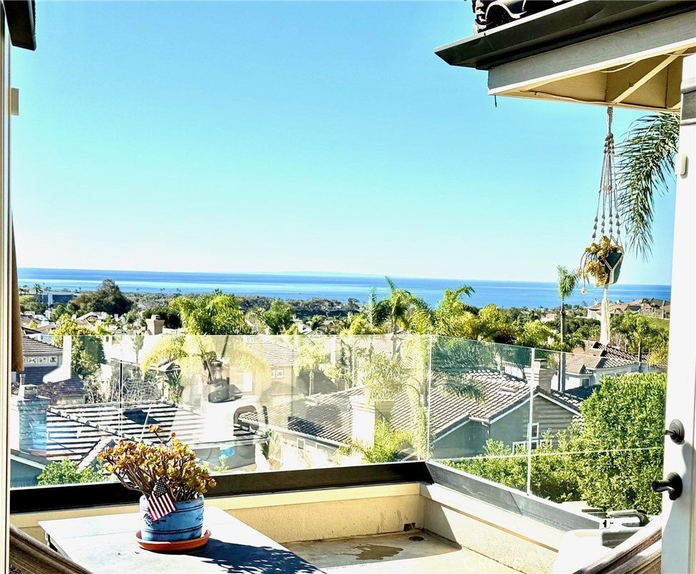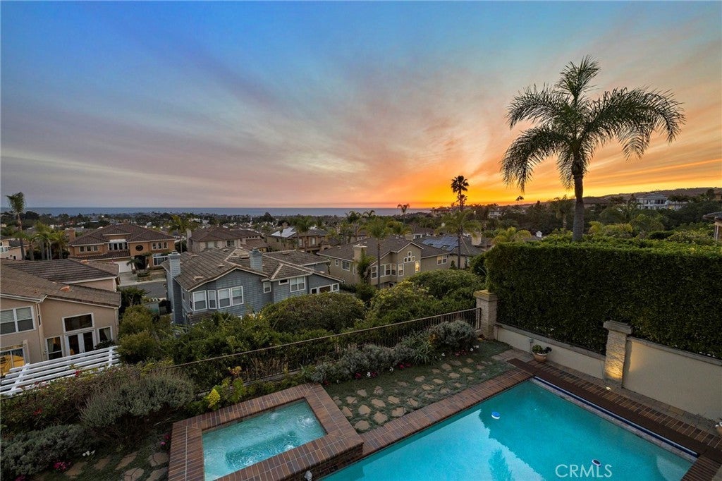 Positioned behind the gates of Ocean Ranch, this coastal residence captures EXPANSIVE OCEAN & SUNSET VIEWS (photos do not do justice) from Both First and Second Floors. Stone flooring introduces the entry, transitioning to vintage oak floors that continue throughout both levels of the home. The kitchen features custom cabinetry, Mont Blanc leathered quartzite countertops, reclaimed wood shelving, and a generous island. High-end appliances include double Bosch dishwashers, Bosch double ovens, a Dacor induction cooktop and refrigerator, wine storage, and a walk-in pantry. The kitchen opens to both the family room and a large adjacent breakfast nook, featuring an expansive picture window with glass-to-glass panel connections that frame the ocean view. The family room is anchored by a fireplace, reclaimed ceiling wood beams, and LaCantina bifold doors, creating an indoor-outdoor connection. The main level also includes a guest bedroom with en-suite bath, built-out library or home office, formal living and dining rooms, a powder bath with Venetian plaster, and a well-equipped laundry room with utility sink and laundry chute. Upstairs, the primary suite enjoys elevated ocean and San Clemente Island views and shares a double-sided fireplace with an adjacent office or retreat. The office/retreat features French doors that open to a sizable deck with spectacular ocean views. The primary bath includes a soaking tub, walk-in shower, imported Italian tile, dual vanities, and 2-spacious walk-in closets with custom organizers. Two additional guest bedrooms each offer en-suite baths. The backyard is designed for both entertaining and everyday enjoyment, with a saltwater pool and spa, waterfall feature, fire pit, built-in BBQ, separate bar, outdoor shower, and an inviting pergola with integrated lighting. Mature landscaping and ocean breezes complete the setting. Additional features include paid for solar panels, epoxy-coated plumbing, a low-water irrigation system. Ideally located near the harbor, beaches, and award-winning schools.