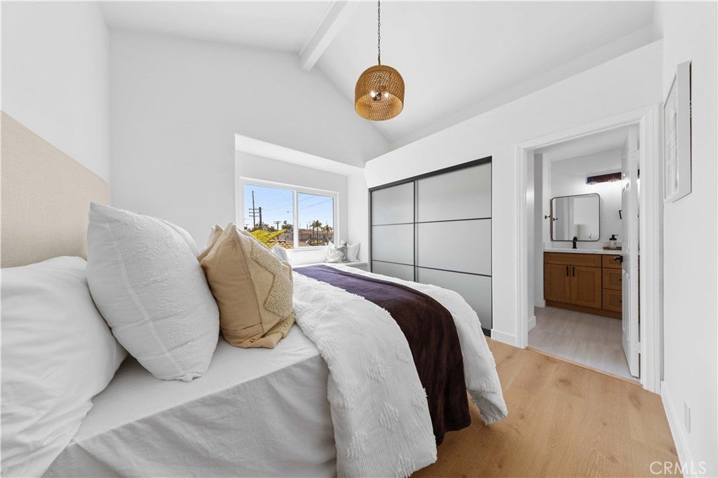 Welcome to this beautifully renovated home, featuring over $250K in upgrades! Blending modern elegance with beachside leisure, this stunning 3-bedroom, 2.5-bathroom home offers a luxurious and relaxed living experience. Step into a sophisticated kitchen, where lavish European black up to the ceiling cabinets and a large island contrast beautifully with premium white tile flooring. Elegant pendant lights with a woven design complement the high ceilings, flooding the space with natural light and enhancing the modern beach-inspired ambiance. The kitchen is equipped with stainless steel appliances and a high-end Fotile rangehood, seamlessly connecting to a spacious backyard with low-maintenance landscaping—perfect for outdoor relaxation. The open-concept living room extending to the front yard, showcases a Restoration Hardware chandelier, adding a touch of timeless elegance. Throughout the home, 4mm premium engineered wood flooring harmonizes with fresh Swiss Coffee white paint, creating a warm and inviting atmosphere. A brand-new glass staircase leads to the second floor, where you'll find three spacious bedrooms, including a luxurious master suite. The master bedroom boasts a sophisticated Restoration Hardware aesthetic, complementing the completely renovated en-suite bathroom with rich natural hardwood cabinetry, a standalone soaking tub, and an upgraded modern shower—a true spa-like retreat. Step out onto your private balcony and soak in the coastal breeze. The two additional bedrooms share a beautifully updated bathroom, ensuring both style and comfort. All 3 bathrooms updated. With new interior and exterior paint, this home is fully upgraded and move-in ready—no additional work needed! Situated in a premium beachside location, this home offers the ultimate Southern California lifestyle, where every day feels like a staycation. About 0.7 mile to the beach. Don’t miss the opportunity to own this dream home—perfect for creating unforgettable memories with family and friends!