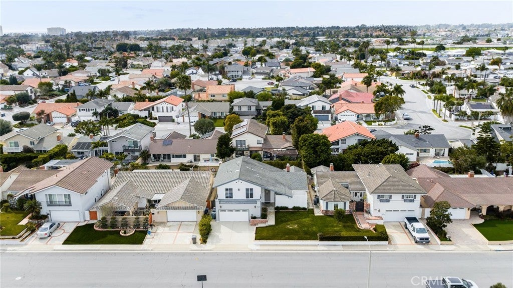 Welcome Home to this beautifully updated 5 bedroom, 3 bath home offers 2,181 square feet of thoughtfully designed living space in the highly sought-after Pacific Sands neighborhood. Tucked away on a quiet cul-de-sac just 1.5 miles from the beach, this home blends modern upgrades with comfort and versatility. Step inside to a bright living room with soaring vaulted ceilings, a cozy fireplace, recessed lighting, and all-new blinds. The open-concept layout flows seamlessly into the dining area and remodeled kitchen, featuring granite countertops, rich cherry wood cabinetry, pantry storage, and brand-new stainless steel appliances. The flexible floor plan offers multiple living areas, ideal for multi-generational living, guests, or a dedicated home office. The lower level includes a wet bar, full bath, and direct access to the garage for added convenience. Upstairs, the spacious primary suite features mirrored wardrobes and access to a private balcony. The ensuite bath has been thoughtfully renovated with a modern walk-in shower and warm teak cabinetry, creating a spa-inspired retreat. Both upstairs bathrooms have been tastefully updated, offering a clean, refreshed feel throughout. Secondary bedrooms are filled with natural light and include ceiling fans and ample storage. Step outside to a dual-level backyard with fresh landscaping and added privacy hedges, creating the perfect space for entertaining or unwinding. Sprinkler systems service both the front and back yards. Additional improvements include new Yale smart locks, a new thermostat, dual-pane windows, and recently painted interiors. Located near Huntington Beach’s award-winning schools, including Peterson Elementary within walking distance, and just minutes from the beach, shopping, dining, and the vibrant shops and restaurants at Pacific City, this home offers the ultimate coastal lifestyle Huntington Beach is known for.