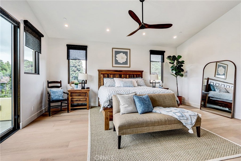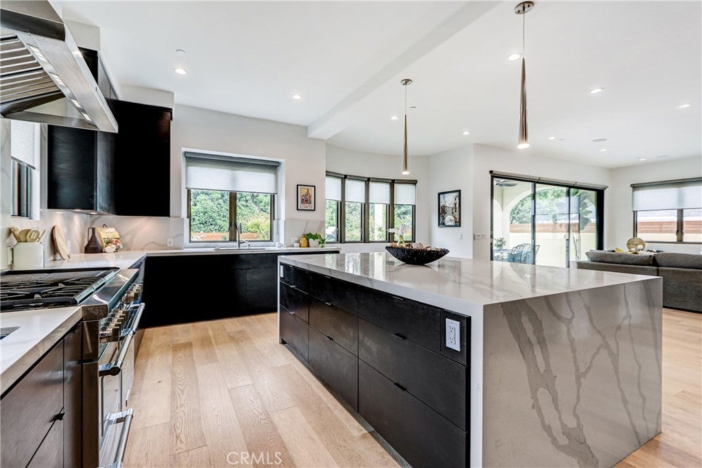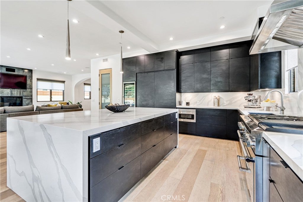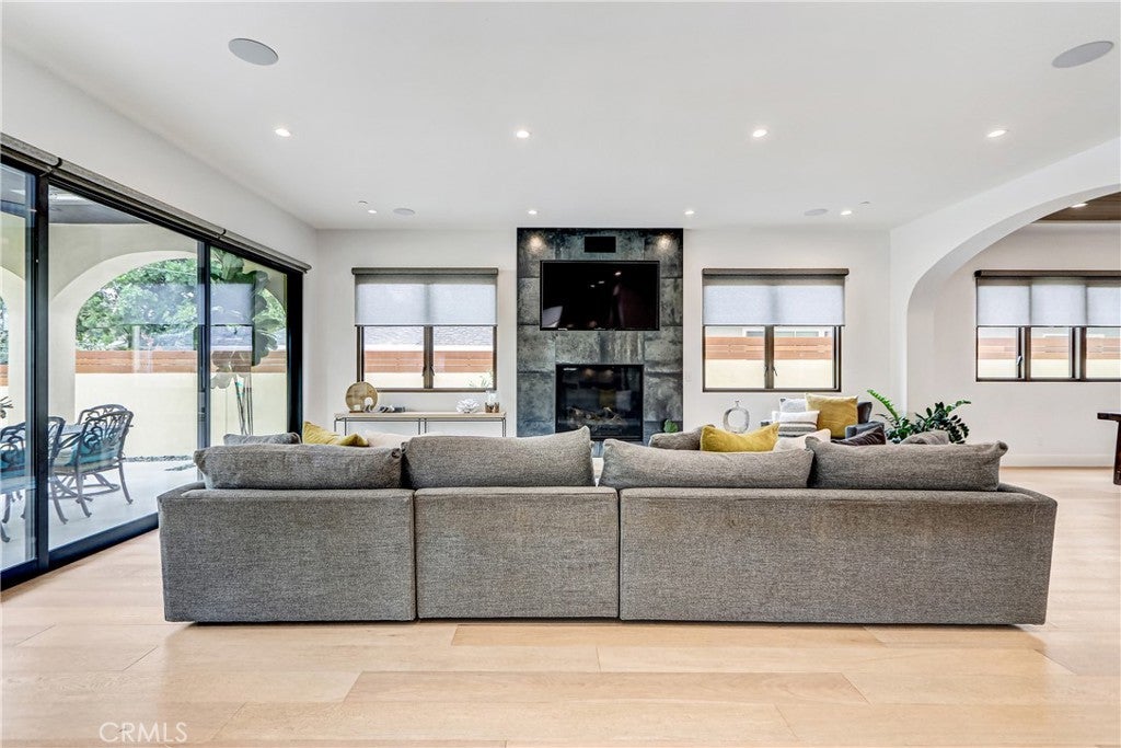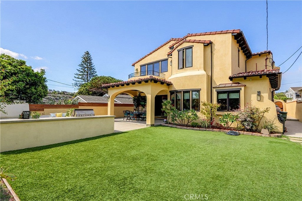 Welcome to this exceptional custom estate in the heart of the Lower Hollywood Riviera, built from the ground up in 2020. Offering 5 bedrooms, 4 bathrooms, and 3,750 sq. ft. of refined living space, this residence blends modern Italian and Montecito-inspired architecture with warmth and elegance. The chef’s kitchen is a showpiece with Thermador appliances, an oversized quartz island, wine refrigerator, and custom finishes that make entertaining effortless. Dramatic vaulted ceilings, skylights, engineered white oak floors, and architectural curves create a timeless aesthetic. The open-concept design flows seamlessly into inviting living spaces, accented by three fireplaces and a handcrafted Alder wood front door. Expansive Fleetwood doors lead to a private backyard retreat featuring a covered patio with built-in heaters, surround sound, ceiling fans, Lynx grill, custom brick oven, and gas fire pit with built-in seating. Unwind in the outdoor electric spa or rinse off in the outdoor shower. With low-maintenance turf, fruit trees, and ample space for gatherings, this home is designed for year-round enjoyment. Additional highlights include a 3-car garage with EV-ready outlets, tank-less water heaters, and a security system. All of this is just a short stroll to the beach, Riviera Village shops, dining, and El Retiro Park. A true Riviera gem that perfectly balances luxury, comfort, and the coastal lifestyle.