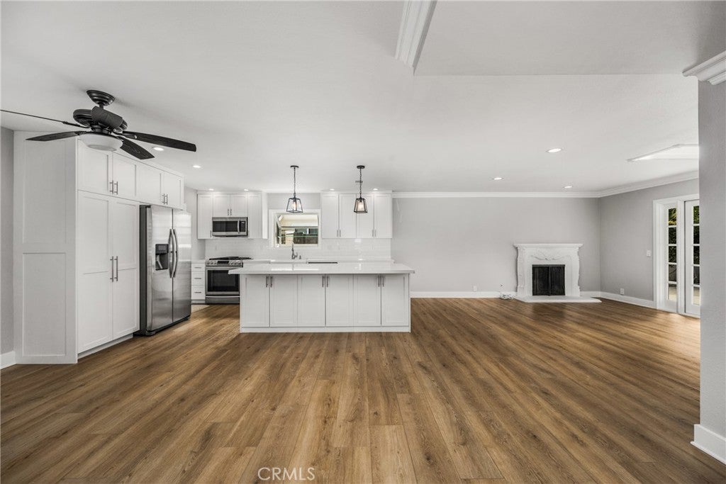 Stunning single-story home in the heart of Huntington Beach. From the curb, you will immediately see this is something special. First time ever offered as a rental and always lovingly cared for by its owners. The perfect floor plan features a spacious, bright living room with newly installed flooring and a custom stone fireplace. The kitchen is a dream — newly renovated with all-new white cabinetry, quartz countertops, and stainless-steel appliances. Enjoy the expansive kitchen, a perfect place for everyday living. The dining room opens to the kitchen, offering the ideal setting for hosting both formal and informal gatherings with friends and family. Completing the interior are three well-appointed bedrooms and two full bathrooms. Home was originally four bedrooms, walls have been removed to expand the living space. Recent interior updates include fresh light paint, designer-selected lighting and cabinetry, shutters, crown molding, ceiling fans, and new flooring. The highlight of this home is the tranquil backyard with lush greenery, patio cover, and a cozy fire pit all completing the space. The front yard features a large grass area, a beautiful white fence front yard and a newly built patio trellis. Two-car garage with plenty of storage and an oversized driveway add to the charming curb appeal. Enjoy everything HB has to offer — Best location with just 3 short miles to the sand, extensive bike paths, award-winning schools, and fine dining. The neighborhood offers unbeatable convenience with a premier shopping center just steps away, including Target, Whole Foods, Starbucks, Stater Bros., CVS, Shake Shack, Kohl’s, and more. Life is easy in this beautiful home! Owner will consider small dogs under 10lbs.